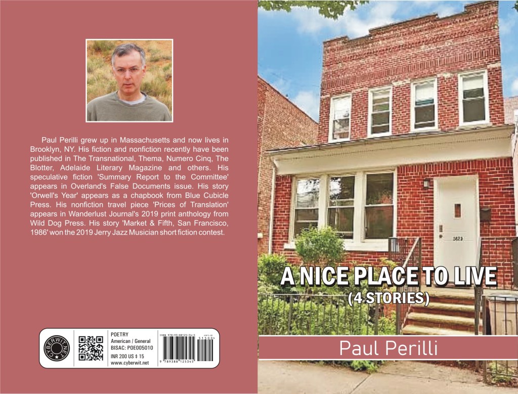 NEWS: July 2, 2020July 29, 2025Paul PerilliLeave a comment My chapbook of four published stories A Nice Place to Live is forthcoming later this month from Cyberwit.